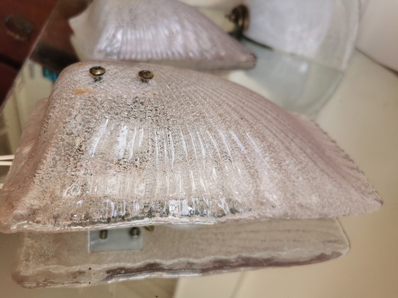 Beautiful pair of slightly pink Murano Graniglia bubble glass sconces.