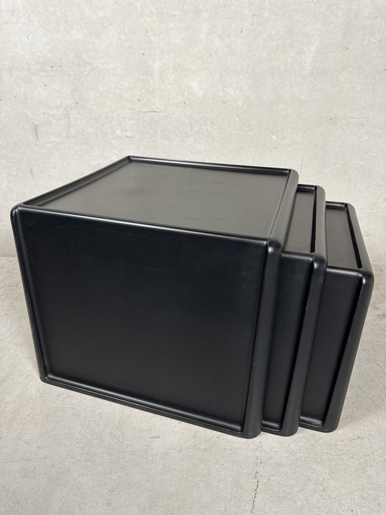 Original nesting table set by Peter Ghyczy for Horn in the 1970s. Made of Baydur (polyurethane and duromer), a high-quality synthetic material. Finished with a matte black lacquer. Some signs of wear, such as scratches. Height: 41cm. Width: 50cm. Depth: 50cm. Weight: 14kg. Marked. Ask us for the correct shipping price based on your location.