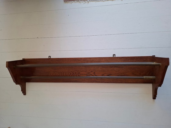 This vintage oak coat rack is a real eye-catcher for your hallway. With its warm brown hue and sturdy copper rods with 12 copper hooks, it adds a touch of nostalgia to your interior. Perfect for stylishly hanging your coats and scarves.