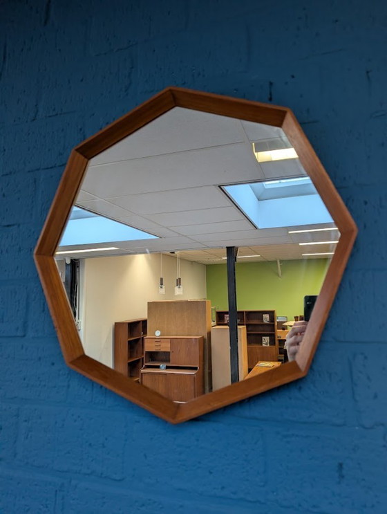 A lovely vintage octagon mirror. Made of solid teak, its octagonal shape immediately catches the eye.