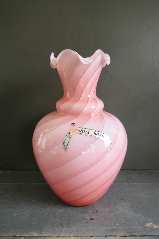 Vintage Opalina Fiorentina glass vase pink, height 29.5 cm, diameter 19 cm.