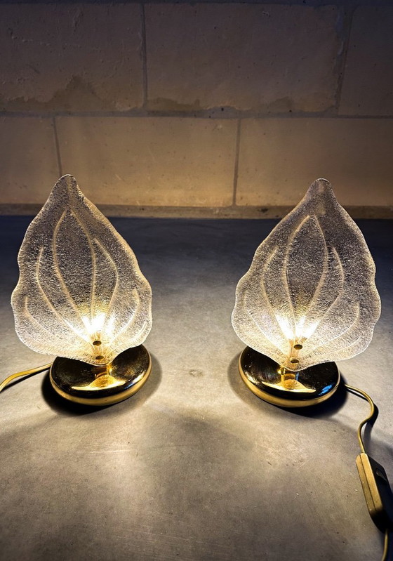 Beautiful Mid - Century design. 1970s table lamps made by Italian Novaresi. Brass lamp base with Murano glass top. In very good vintage condition.