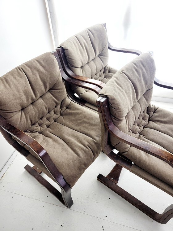 Vintage Esko Pyjamas chairs from Finland. Scandinavian design, in my eyes they look a bit like "safari" chairs. Color brown/taupe.