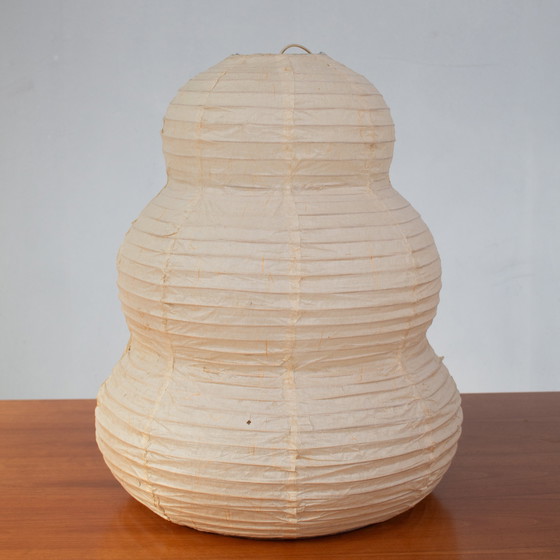 A charming vintage paper ceiling light with an E27 fitting found in Italy. This piece features a sculptural lantern design with a paper texture, creating a warm and inviting atmosphere. Although the exact year of construction is uncertain, the vintage look is unmistakable. Its distinctive, organic shape makes it a unique addition to any room, offering both style and functionality. Ideal for adding a touch of retro elegance and mood lighting to your interior.