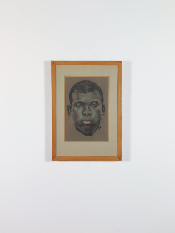 Discover a fascinating piece of art history with this vintage portrait of John C. Bullen from 1988. This pastel drawing, framed in an elegant passe-partout, masterfully captures the essence and depth of its subject.