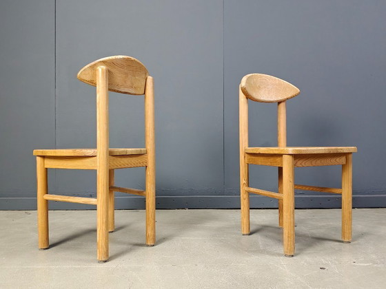 Vintage pine wood dining chairs in the style of Rainer Daumiller.
