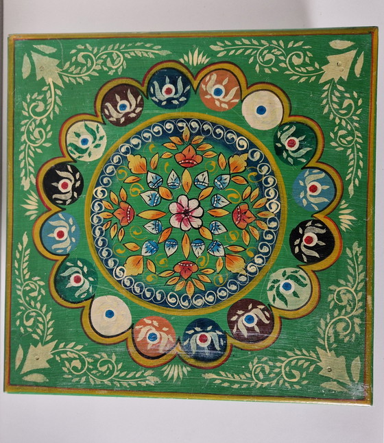 This beautiful vintage plant table from the 1990s brings a touch of Indian flair to your interior. With its vibrant colors and detailed patterns, it's a real eye-catcher that will brighten up any room.