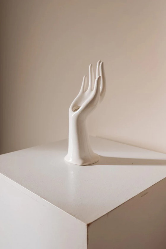 Beautiful vintage porcelain hand. A truly unique addition to your home, it's versatile and versatile, serving as a vase, pen holder, holder for glasses, jewelry, and rings, or as a photo display. In perfect condition!