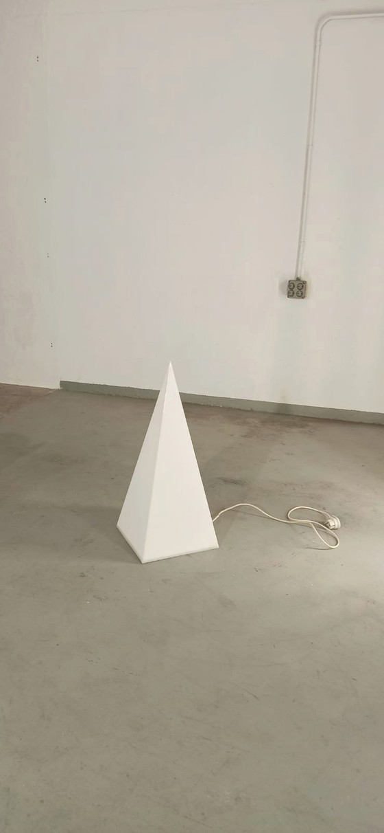 Vintage design pyramid shaped floor lamp or large side lamp / table lamp, white plastic.