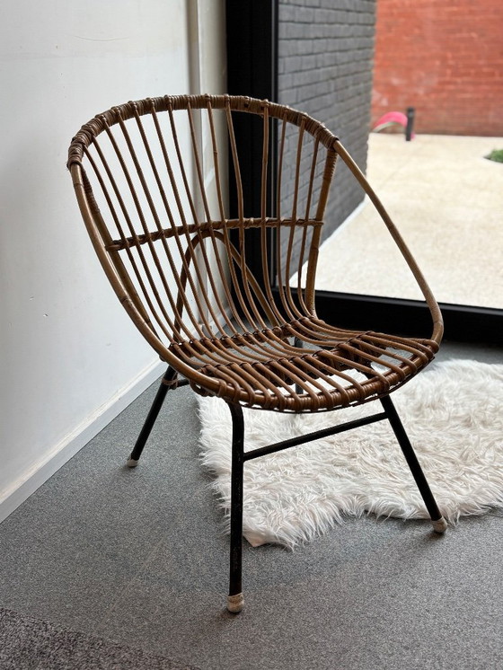 ConditionGoodColorsBrown, BlackMaterialBamboo, Rattan, MetalNumber of items1Height72 cmWidth60 cmDepth56 cmSeat height35 cmSigns of usageRust, Discoloring