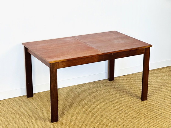 Its tabletop is made of two wide wooden panels, displaying a beautiful warm brown hue with a subtle patina acquired over time.
