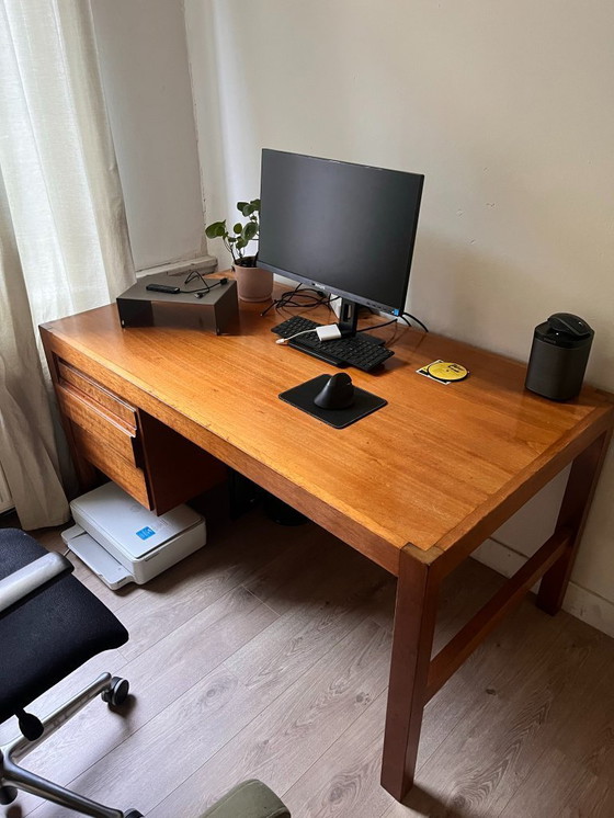 Vintage desk from the 1960s/70s made of solid teak. Beautifully finished, especially evident in the drawers, which are also very deep for ample storage.