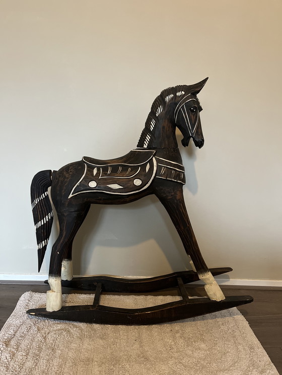 Beautiful vintage wooden rocking horse for sale! It has some minor imperfections over the years, but it's still great as decoration in a child's room or any other fun place 🥰