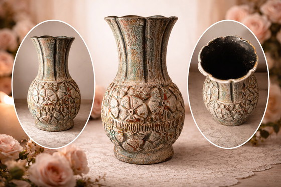 Roth Keramick, Germany Model 311, lobbed corolla neck Fat lava style, mid-century modern Floral decoration in relief Excellent condition