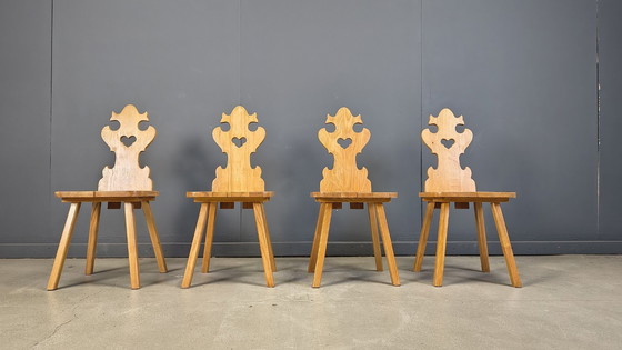 Vintage oak heart shaped dining chairs in tiroler style.
