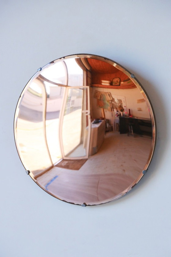 This is why you should choose this vintage witch mirror to enhance your wall decor. This "witch's eye" model is distinguished by its iconic domed glass. Furthermore, this vintage witch mirror has a salmon/pink colored backing that offers warm reflections and a unique depth to your interior.