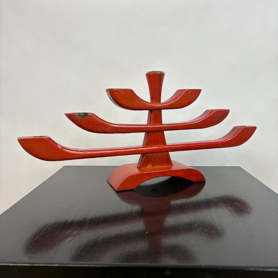 Beautiful red wooden Scandinavian candlestick from the 1960s.