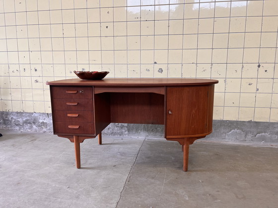 Step back in time with this charming vintage Scandinavian desk by HP Hansen. Perfect for adding a touch of mid-century flair to your home office, this desk is all about style and functionality. Crafted from rich wood, it boasts a warm brown hue that brings a cozy vibe to any space.