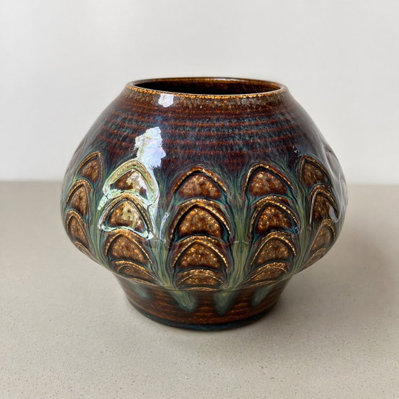 A stunning ceramic vase produced by Søholm Stentøj, an iconic manufacturer from the island of Bornholm in Denmark.