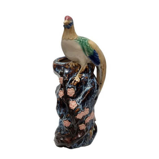 This vintage Shiwan pheasant vase from the 1970s and 1980s is a characteristic example of Chinese stoneware from Foshan, near Canton (Guangdong). The vase is crafted in the typical Shiwan style, known for its expressive modeling and rich, multicolored glazes. It is in perfect condition and marked.