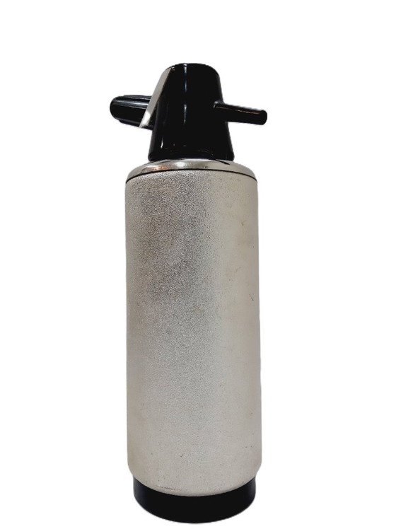 Step back in time with this exquisite Vintage Czech Soda Siphon by ROSTEX, a true testament to mid-century craftsmanship. This seltzer bottle, with its sleek silver body and contrasting black accents, is not only a functional piece but also a striking decorative object that adds a touch of vintage charm to any setting.