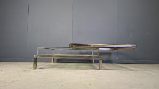 This luxurious coffee table is made from heavy quality polished steel, brass and glass plexi.