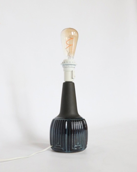 Unique handmade ceramic lamp from the Danish brand Søholm. Søholm stentøj lamps vary in design, finish, and glaze, making them so unique. The design of this lamp is attributed to designer Einar Johansen, and his signature is also on the bottom of the lamp. The lamps are made by various designers and artists. The bottom of the lamp often indicates the designer and the series from which it originates. We have chosen to add a warm bulb to the lamp. A lampshade can also be added. The lamp comes with a new power cord.