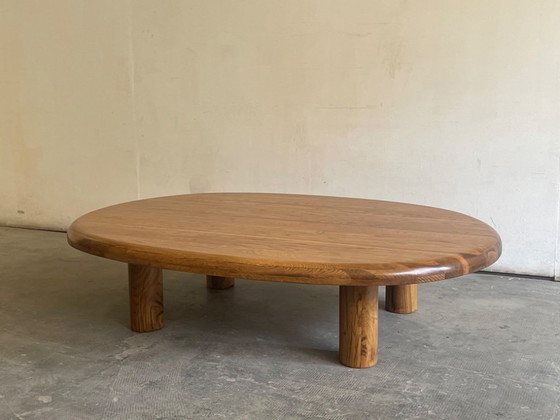 Enhance your living area with this vintage solid oak coffee table, a piece that exudes timeless elegance and robust craftsmanshipy. Its rich brown hue and smooth finish highlight the natural beauty of the wood, offering a versatile centerpiece for any modern interior.