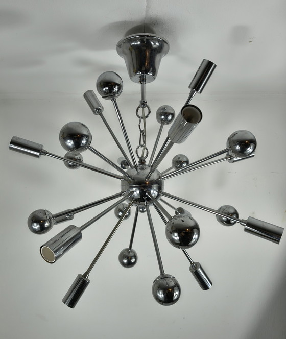 Bring a touch of retro-futurism to your interior with this beautiful vintage Sputnik pendant lamp. With its iconic design inspired by the 1960s space race, this lamp is a real eye-catcher that will bring any room to life.