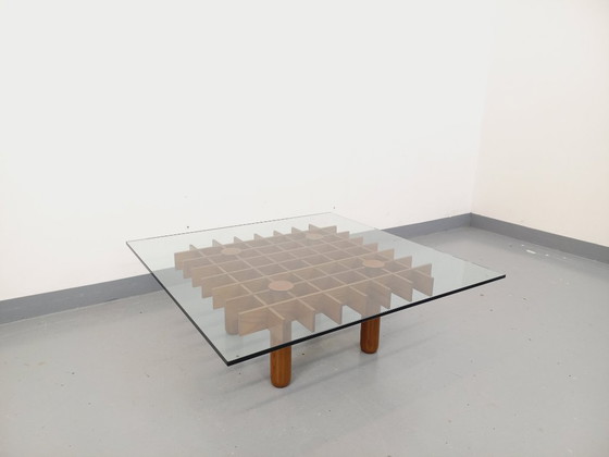 Image 1 of Vintage square Italian coffee table Kyoto by Gianfranco Frattini for Knoll in ash wood and glass from the 1970s