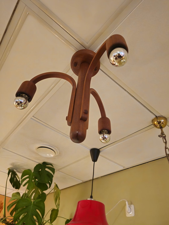 Beautiful teak Domus pendant lamp, a masterpiece that adds a touch of refinement to any room. With its warm wood tones and unique design, this lamp is a perfect addition to both classic and modern interiors.