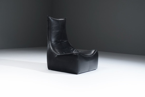 This original vintage example has been fully reupholstered in brand new high quality black leather. The new leather has been carefully selected to respect the original character of the design, offering a rich surface, natural softness and long term durability. The upholstery work gives the chair a renewed presence while preserving its authentic Montis identity.