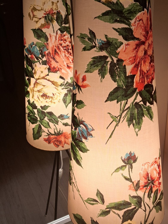 #VintageLamp #StaandeLamp #DriepootLamp #MidCentury #RetroDesign #1960s #InteriorDesign #VintageInterieur #Designclassieker #Whoppah #FloraleLampenkap #VintageVerlichting