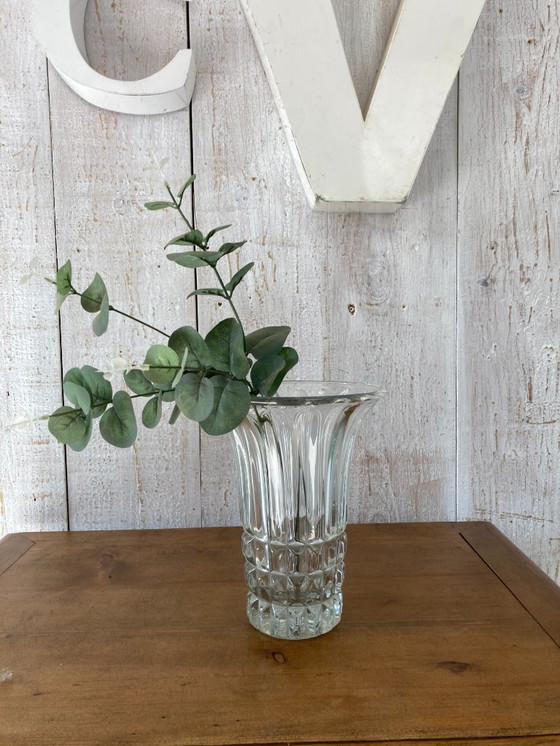Discover this vintage glass vase, a timeless piece that will add a touch of elegance to your home. Its crystal-clear transparency and refined design make it a perfect choice to showcase your floral arrangements.