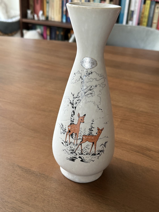 Special vase West Germany with print of deer / Bambi. 25 cm high - diameter approx. 10 cm.