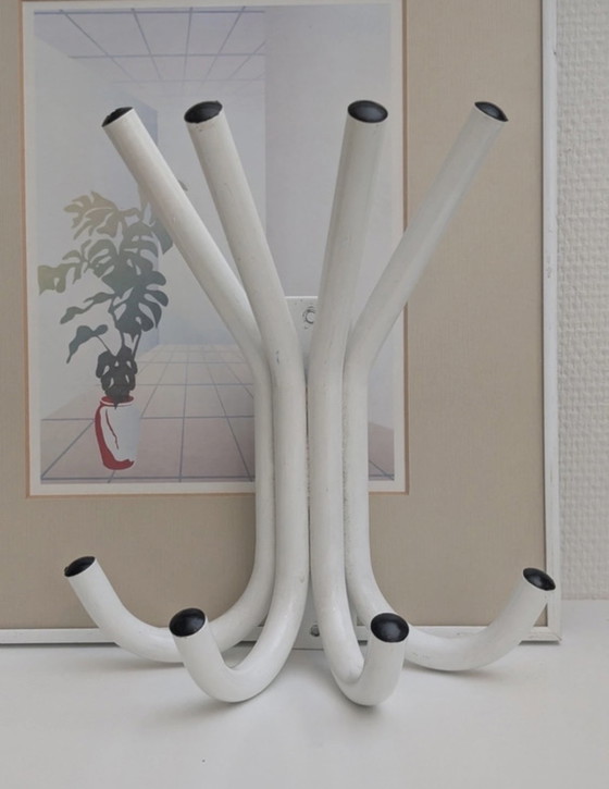 Vintage Wall Coat Rack, Steel, White and Black, 1980s