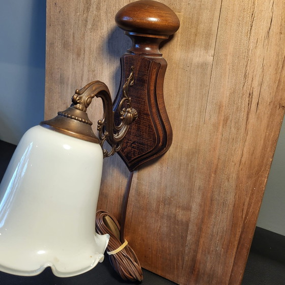 Add a touch of elegance to your interior with this beautiful vintage wall sconce. The bronze fixture, combined with an elegant glass shade, exudes a timeless charm that fits perfectly in both classic and modern settings.