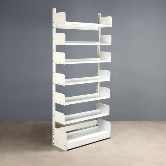 1970s Lips-style bookcase in white lacquered metal with adjustable shelves. Code: MOMOLI0301720 In fair condition, showing some signs of wear.