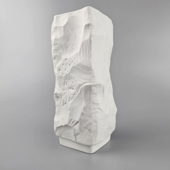 Vintage white porcelain vase made by Hutschenreuther in the 1970s, Germany. Op Art vase, designed by Heinrich Fuchs. The vase is in nice vintage condition, see photos. Height 23 cm, diameter at widest point 10 cm and weight is 1.0 kg.