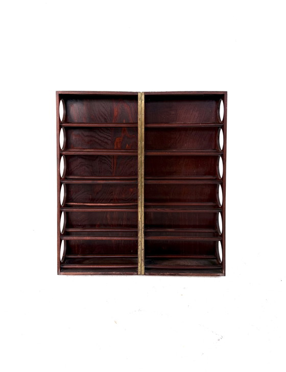 Beautiful wine cabinet consisting of 2 parts connected by a brass hinge.