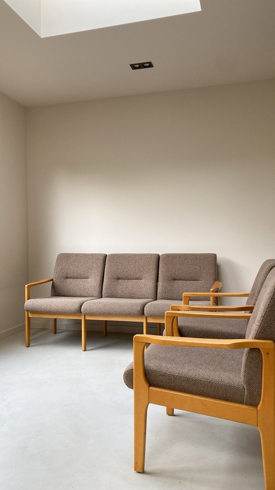 ConditionGoodColorsGrey, Beige, BrownMaterialWood, TextileNumber of items3Height85 cmWidth182 cmDepth66 cmSeat height44 cm