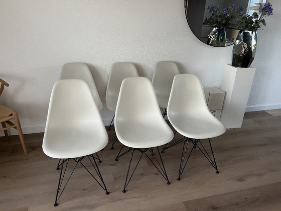 For sale: 6 original Vitra DSR chairs in Pebble, with a black base. Iconic design by Charles & Ray Eames. The chairs are in perfect condition, as good as new, and have no signs of wear.