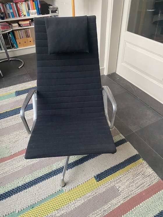 Beautiful Vitra Eames 124 lounge chair, matte chrome finish, swivel and tilt, with black hopsak fabric and headrest. In excellent condition, undamaged, barely used. Bidding starts at €900.