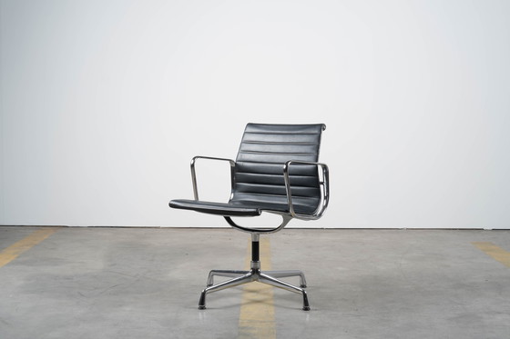 The EA 108 is probably the most famous office chair ever made. This one has a chrome-plated aluminum frame and is upholstered in high-quality leather. The swivel base ensures smooth rotation. With its timeless design and practical functionality, this chair fits perfectly into both modern and classic interiors.