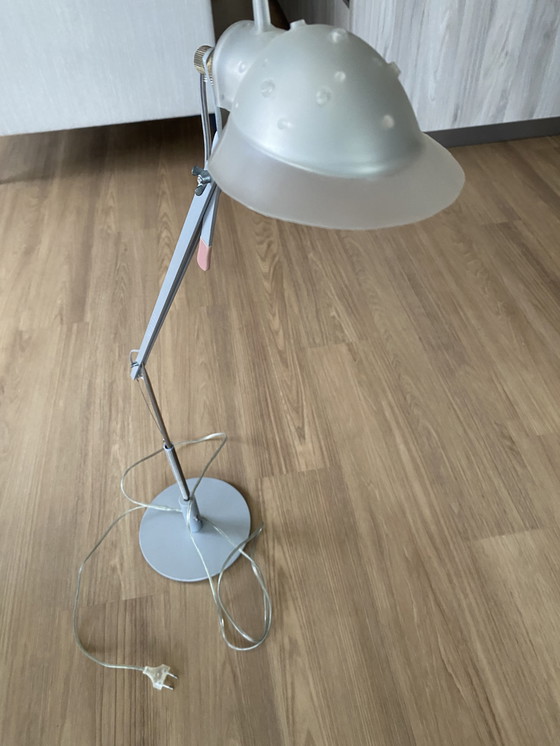 Illuminate your space with the sophisticated charm of the Ingo Maurer prototype floor lamp. This exquisite piece, designed by the renowned Ingo Maurer, features a sleek and modern aesthetic that effortlessly complements contemporary interiors. The lamp's adjustable arm and head provide versatile lighting options, making it an ideal choice for both reading and ambient lighting.