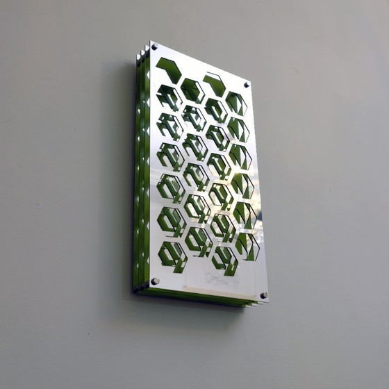 Mirrored wall art piece created and signed by visual artist Feddow Claassen. Can be hung upright, horizontally, or placed flat.