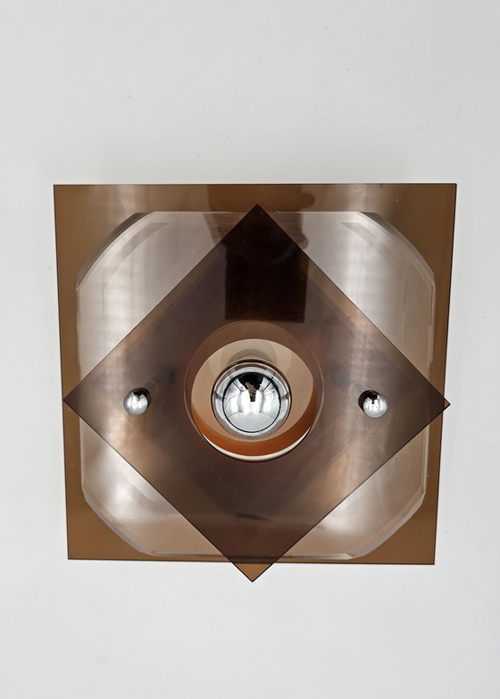 Bring a touch of retro charm to your interior with this unique wall lamp by Herda from the 1970s. Made of high-quality plastic, this lamp emits a warm, brown glow that is perfect for vintage or modern interiors.