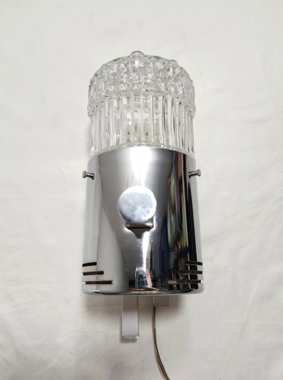 Illuminate your space with this exquisite wall lamp from the 1970s, a true testament to Spanish craftsmanship. This vintage piece combines sleek metal with textured glass, creating a captivating interplay of light and shadow that will enhance any room's ambiance.