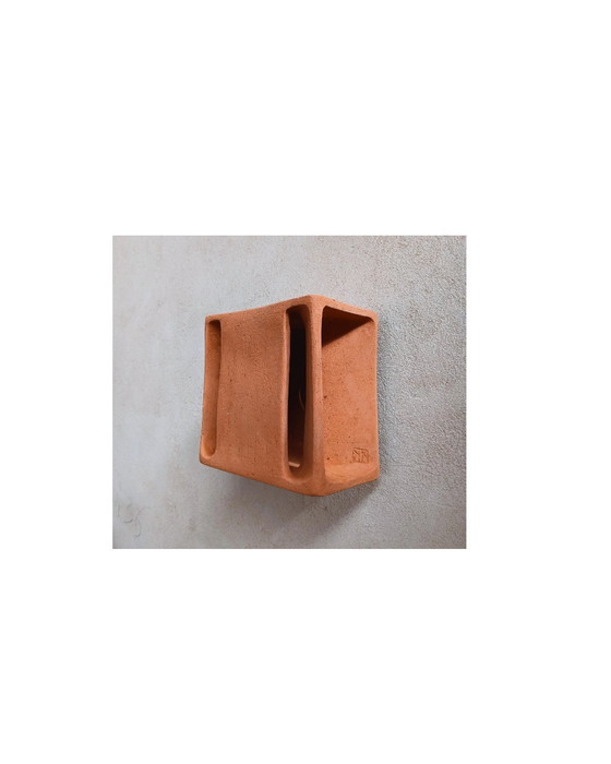 This wall lamp, from the "Block" series, is handcrafted from high-temperature brown earthenware in a brutalist style.