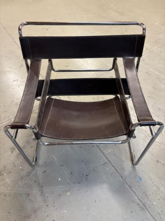 ConditionGoodColorsBrown, Black, SilverMaterialChrome, LeatherNumber of items1Brand / designerBreuerBrandMarcel BreuerHeight78 cmWidth73 cmDepth68 cmSeat height40 cmSigns of usageDiscoloring, Scratches